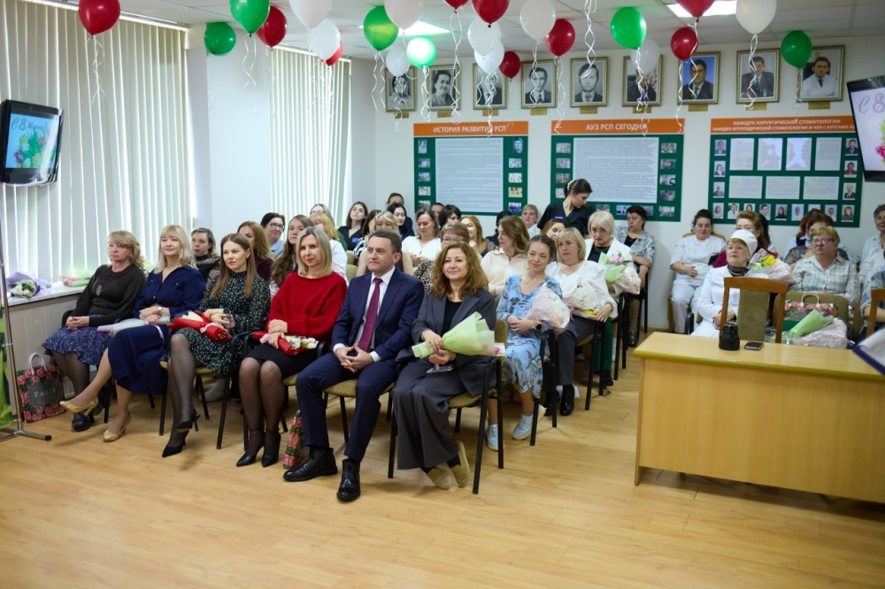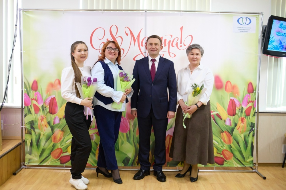 В конференц-зале Республиканской стоматологической поликлиники состоялось торжественное собрание коллектива, приуроченное к празднованию Международного женского дня 8 Марта. С поздравительной речью выступил главный врач Руслан Галеев. Нашим коллегам Герасимовой А.А., Салихяновой Г.В., Суворовой Ж.Н., Давлетовой Ф. А., Самойловой Г. И. были вручены Медали «За самоотверженность и профессионализм» и Почетные грамоты республиканской организации Башкортостана профсоюза работников здравоохранения РФ.