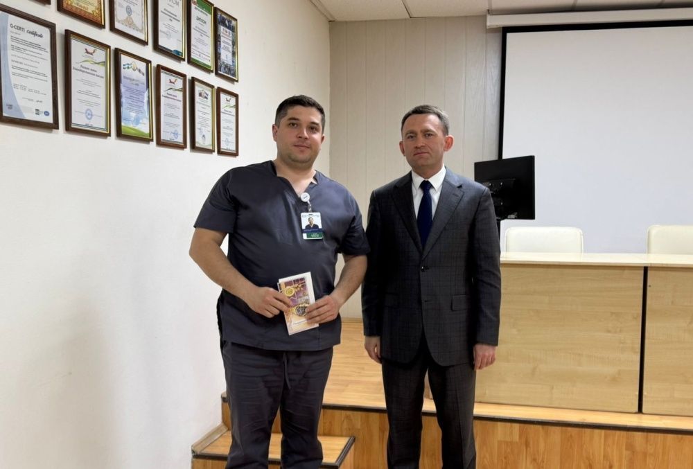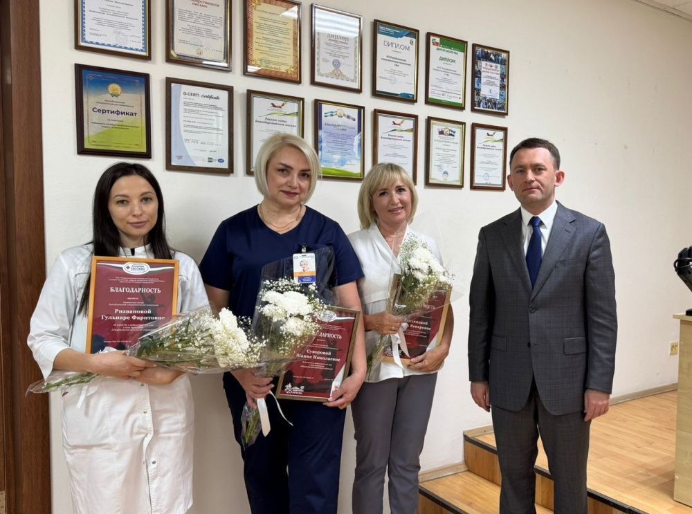 В ходе совещания Руслан Валерьевич поздравил с днем рождения заведующего хирургическим отделением Гайфуллина Ильдара Рузилевича и юрисконсульта Незамова Рустэма Тимерхановича, а так же вручил медицинским сестрам АУЗ Республиканская стоматологическая поликлиника благодарность Профессиональной ассоциации СВССМФО РБ «За мужество и добросовестный труд в зоне проведения СПЕЦИАЛЬНОЙ ВОЕННОЙ ОПЕРАЦИИ».