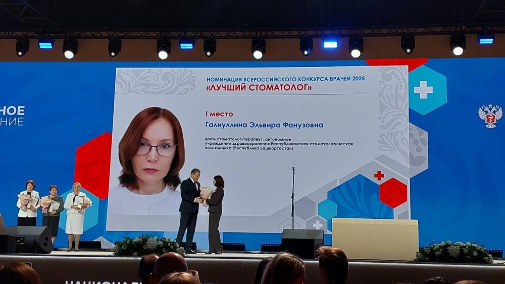 Награду за победу в номинации «Лучший стоматолог» получила Эльвира Фанузовна Галиуллина, врач-стоматолог Республиканской стоматологической поликлиники.