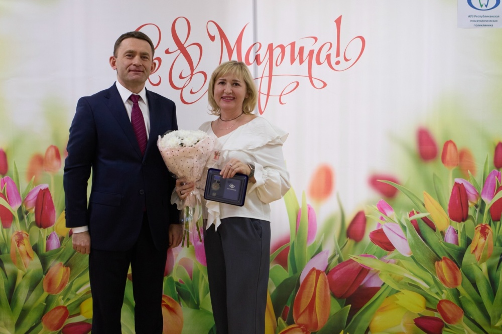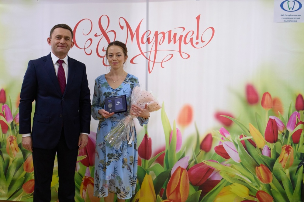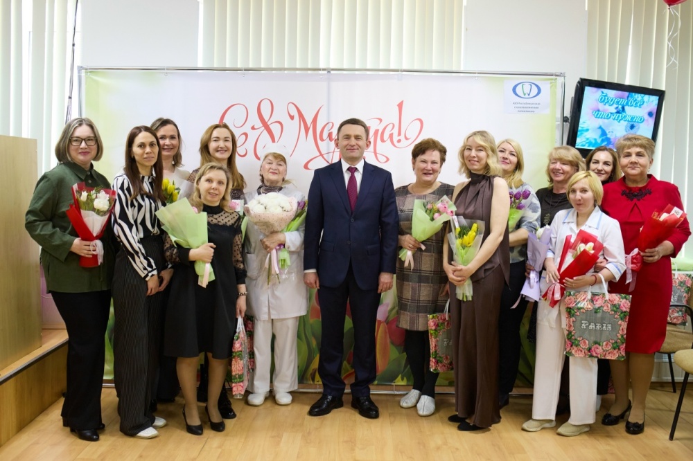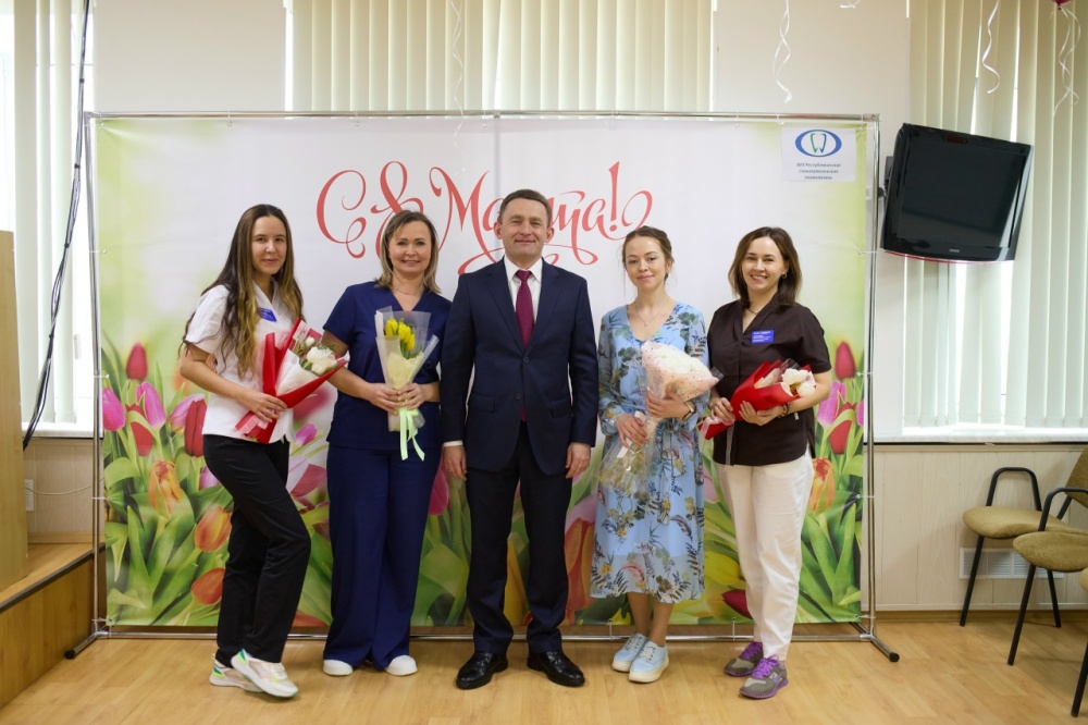 В конференц-зале Республиканской стоматологической поликлиники состоялось торжественное собрание коллектива, приуроченное к празднованию Международного женского дня 8 Марта. С поздравительной речью выступил главный врач Руслан Галеев. Нашим коллегам Герасимовой А.А., Салихяновой Г.В., Суворовой Ж.Н., Давлетовой Ф. А., Самойловой Г. И. были вручены Медали «За самоотверженность и профессионализм» и Почетные грамоты республиканской организации Башкортостана профсоюза работников здравоохранения РФ.