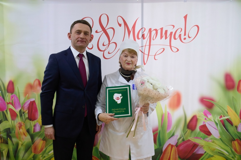 Для прекрасной половины коллектива была организована концертная программа с участием солистов Национального оркестра народных инструментов Республики Башкортостан, Заслуженного артиста РБ Дмитрия Анисимова и Вильдана Давлетбердина, Лауреата Всероссийских музыкальных конкурсов Владислава Тришина, а также врача-стоматолога-хирурга нашей поликлиники Нарека Нерсисяна. В буфете поликлиники состоялся праздничный фуршет.